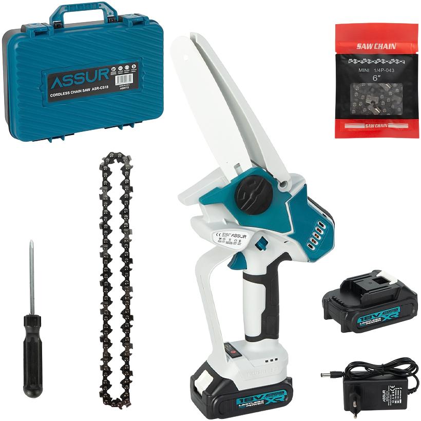 Живлення здійснюється від акумулятора напругою 21V з ємністю 10C 1500 mAh, що гарантує автономність та свободу рухів без підключення до мережі. Компактні розміри та мала вага забезпечують зручність під час тривалої роботи. Cordless Chain Saw ASR772 стане практичним рішенням для дачі, приватного господарства та побутових завдань.