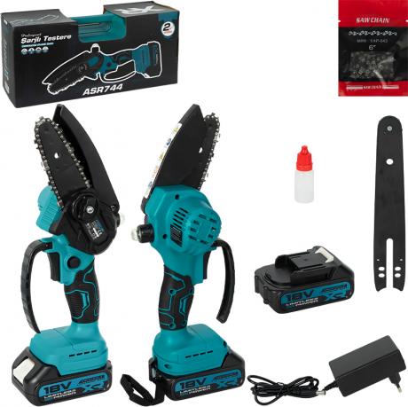 Акумуляторна міні-ланцюгова пила — зручний і компактний інструмент для садових та побутових робіт. Ідеально підходить для обрізання гілок, догляду за деревами й кущами, підготовки дров невеликого діаметра, а також для використання на дачі чи присадибній ділянці. Пила працює від акумулятора(2шт) з номінальною напругою 21V, що забезпечує автономність і свободу пересування без підключення до мережі.