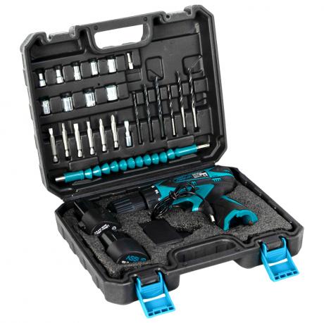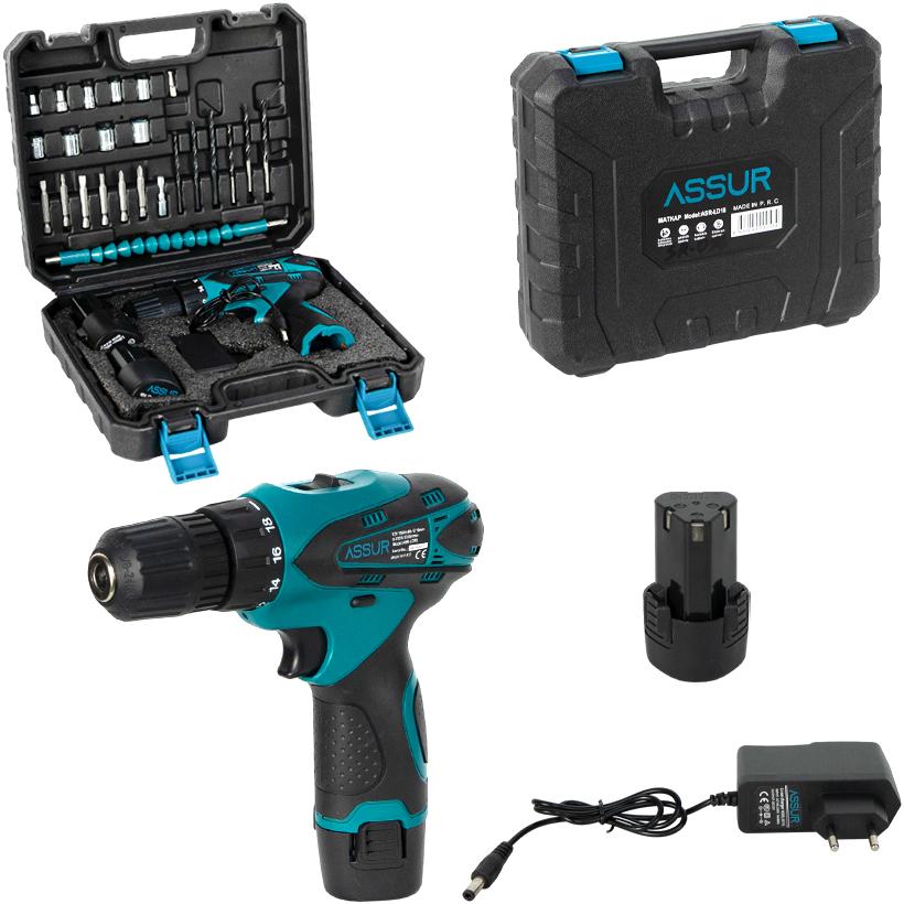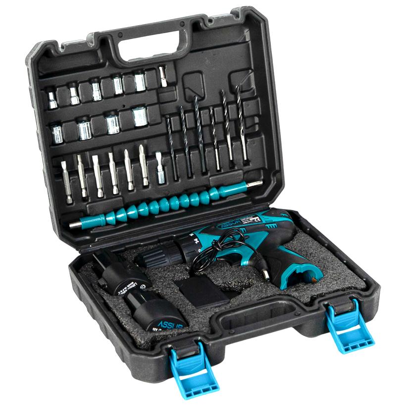 Акумуляторний дриль 12V з патроном 10мм, набір 24 предмета в кейсі ASR058
