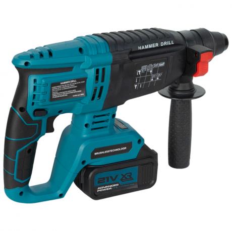 Акумуляторний перфоратор призначений для свердління, буріння та ударних робіт по бетону, цеглі, каменю та інших будівельних матеріалах. Працює від акумулятора напругою 21V та оснащений акумуляторами типу 5C ємністю 3000 mAh з подвійним рядом із 10 елементів, що забезпечує високу продуктивність і тривалий час роботи без підзарядки.
