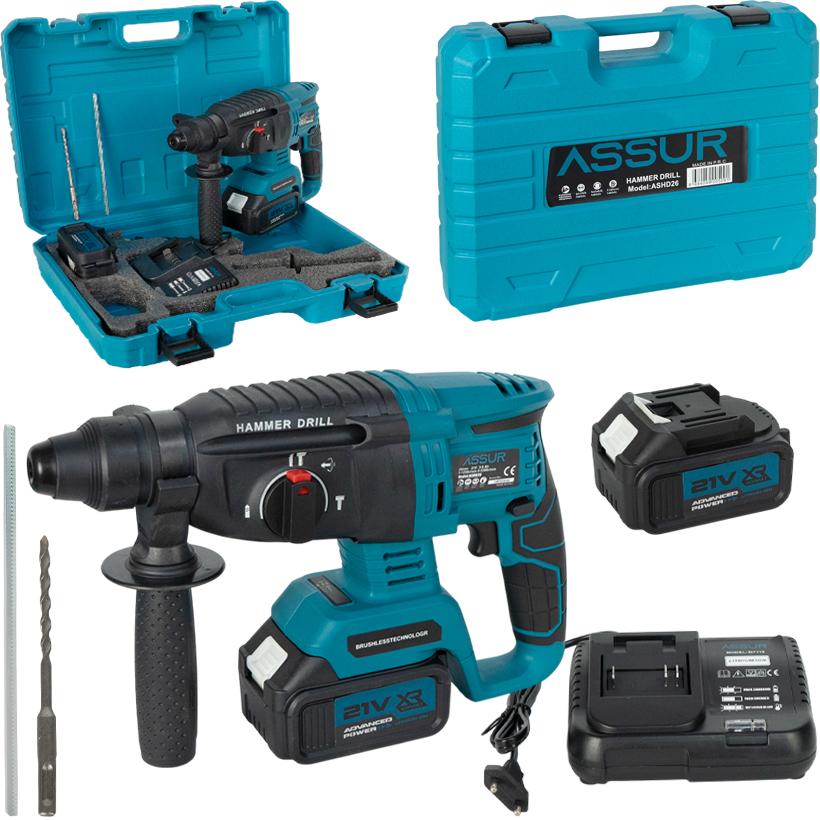 Акумуляторний перфоратор 21V, 2 акумулятори 3000 mAh, набір у кейсі ASR509