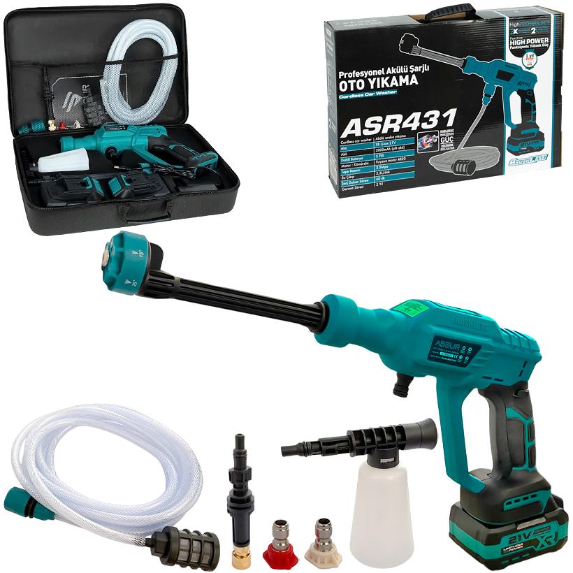 Акумуляторна мийка високого тиску 21V для авто, з повним комплектом аксесуарів у сумці+коробка ASR431