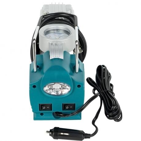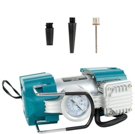 Автомобільний компресор призначений для швидкого та зручного накачування шин, м’ячів, надувних виробів та іншого обладнання в дорозі. Працює від мережі 12 В, споживаний струм — 14 А. Продуктивність становить 35 л/хв, діаметр циліндра — 30 мм, що забезпечує стабільну та ефективну подачу повітря. Компресор оснащений повітряним шлангом довжиною 70 см і кабелем живлення довжиною 3 м для зручного підключення. Вбудовані 4 LED-світлодіоди дозволяють користуватися пристроєм у темний час доби. Поставляється в кольоровій коробці з захисною плівкою.