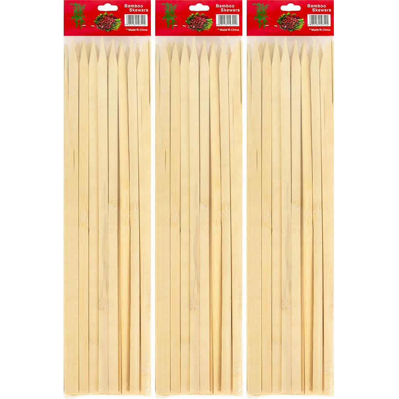 Бамбукові шампури довжиною 40 см і діаметром 9 мм підходять для приготування м'ясних страв на грилі або барбекю. Використовуються одноразово, можуть також слугувати для канапе та десертів. Перед використанням шампури рекомендується замочити у воді, щоб уникнути горіння. Упаковка містить 25 штук. Матеріал – бамбук.