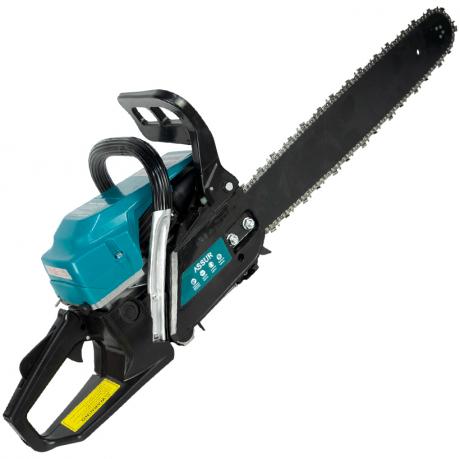Бензинова ланцюгова пила ASR734 призначена для розпилювання деревини, заготівлі дров, садових і будівельних робіт. Оснащена потужним двигуном об’ємом 52 см³ з вихідною потужністю 2,0 кВт (2,9 HP) та робочою швидкістю до 8000 об/хв, що забезпечує високу продуктивність і стабільну роботу під навантаженням. Довжина шини становить 55 см, ведуча зірочка — 38 зубців. Передача здійснюється через надійний колінчастий вал. Об’єм паливного бака — 550 мл, об’єм масляного бака — 260 мл, що дозволяє працювати тривалий час без частих дозаправок. Система запалювання — свічка запалювання, паливо — бензин. Пила підходить для побутового та напівпрофесійного використання.