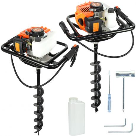Бензобур ASR741 призначений для буріння отворів у ґрунті під час встановлення парканів, опор, стовпів, посадки дерев та інших господарських робіт. Оснащений надійним двотактним двигуном об’ємом 58 см³ з повітряним охолодженням, що забезпечує стабільну роботу навіть при інтенсивному навантаженні. Діаметр шнека становить 100 мм, робоча глибина буріння — до 90 см. Міцний сталевий колінчастий вал підвищує зносостійкість і довговічність інструмента. Паливний бак об’ємом 1000 мл дозволяє тривалий час працювати без дозаправлення. Система запалювання — свічка запалювання, тип пального — бензин. Підходить для побутового та напівпрофесійного використання.