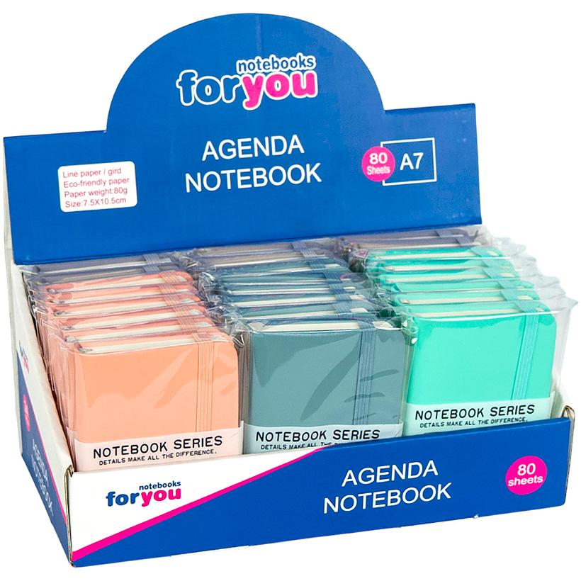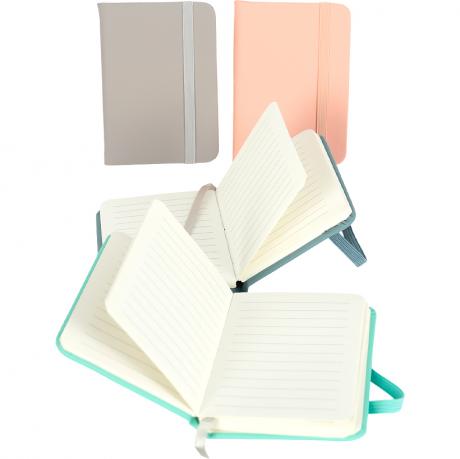 Блокнот формату А7 (7,5x10,5 см) з твердою обкладинкою містить 80 аркушів з лінією кремового кольору. Резинка утримує блокнот закритим, запобігаючи випадковому відкриттю. Твердий переплет забезпечує надійність і захист сторінок. Компактний розмір дозволяє легко носити блокнот у кишені або сумці.
