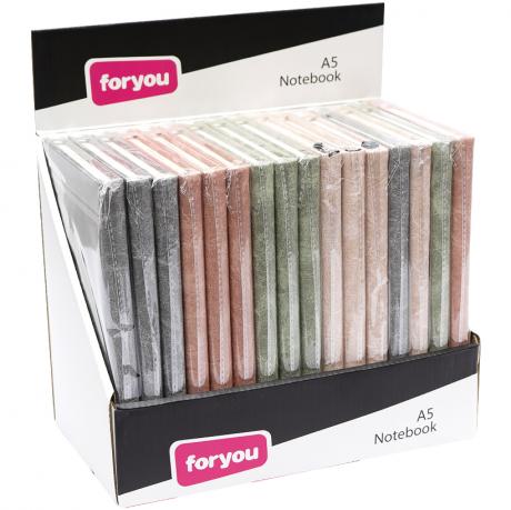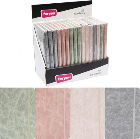 Цей блокнот має тверду обкладинку з шкірзаму і закривається на гумці. Він містить 80 аркушів кремового кольору в лінію. Розмір блокнота становить 21*14 см. Кольори обкладинки представлені в асортименті.