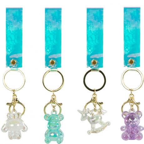 Брелок із прозорою фігуркою та голографічною підвіскою — стильний аксесуар для ключів, рюкзака чи сумки. Фігурка виготовлена з міцного пластику, висота близько 4 см. Компактний і яскравий брелок підкреслить ваш стиль.