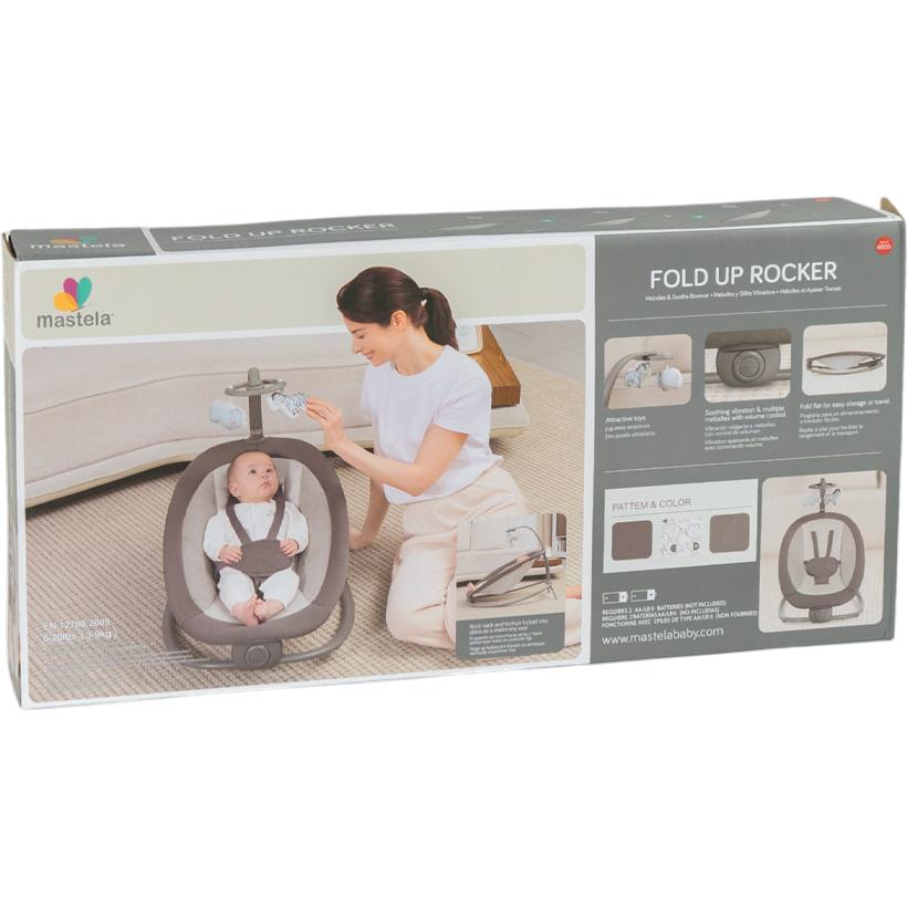 Дитячий шезлонг-качалка Mastela призначений для дітей вагою 3–9 кг. Розмір у зібраному вигляді — 74×50×70 см, довжина гамака — 74 см, висота — 45 см. Конструкція дозволяє малюку самостійно гойдатися, передбачена фіксація в нерухомому положенні. Оснащений знімною панеллю з іграшками, функцією заспокійливої вібрації та кількома мелодіями з регулюванням гучності. Працює від 2 батарейок типу AA/LR6. Компактно складається для зберігання та транспортування, розмір коробки — 59×29×10 см. Товар вигідний для оптових магазинів і підходить для роздрібного продажу.