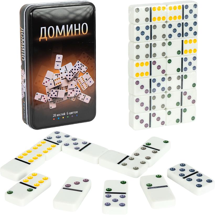 Доміно з пластмаси в металевому боксі — стильний і практичний набір для всієї родини. У комплекті 28 кісточок розміром 5×2×1 см із кольоровими крапками (6 кольорів), що робить гру яскравою та зручною для сприйняття. Упаковка виконана у міцному металевому боксі розміром 19×12×3,5 см, який надійно захищає вміст і зручний для зберігання та транспортування. Чудовий варіант для гри вдома, у подорожах або як подарунок.