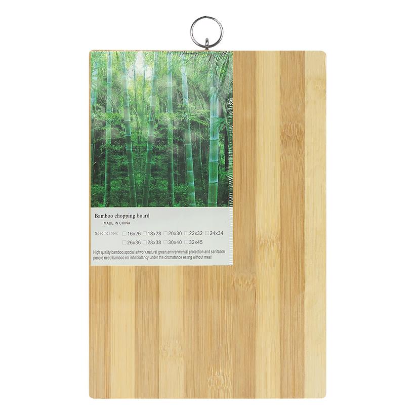Смугаста бамбукова обробна дошка прямокутної форми розміром 22×32 см та товщиною 1,5 см — практичний і екологічний аксесуар для кухні. Оснащена зручною петлею для підвішування, що забезпечує легке зберігання. Натуральний бамбук безпечний для здоров’я, міцний і довговічний, не вбирає сторонні запахи та не змінює колір. Дошка підходить для нарізання овочів, фруктів, хліба й інших продуктів. Оригінальний смугастий дизайн гармонійно доповнює інтер’єр кухні.