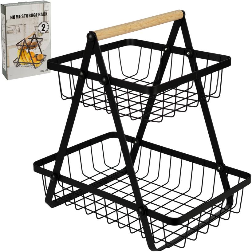Дворівнева металева підставка для зберігання — зручне та стильне рішення для кухні, їдальні або робочого простору. Міцна металева конструкція забезпечує стабільність і довговічність, а дерев’яна ручка дозволяє легко переносити виріб. Два рівні допомагають компактно розмістити продукти, посуд або кухонні аксесуари, заощаджуючи простір.