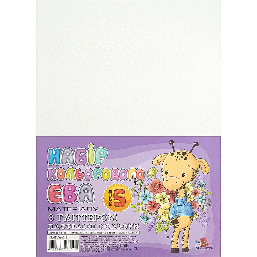 Фоаміран білий глиттер А4 IR-EVA-013,21х29,7см, 2,00 мм 5 лист.