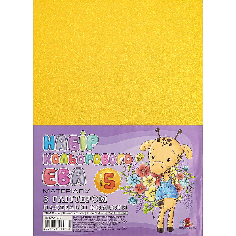 Фоаміран темно-жовтий глиттер А4 IR-EVA-012,21х29,7см, 2,00 мм 5 лист.