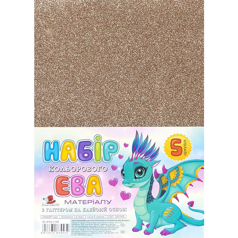 Фоаміран світло-коричневий з глітером клейова основа GL-EVA-1-020 А4, 21х29, 7см, 1.6 мм, 5 лист. ФЦ014/12