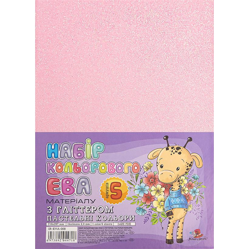 Фоаміран темно-рожевий глиттер А4 IR-EVA-008,21х29,7см, 2,00 мм 5 лист.