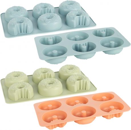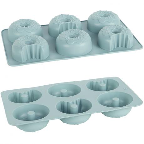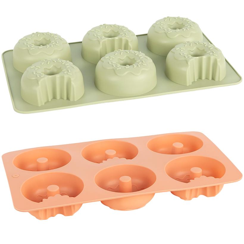 Силіконова форма «Пончики» FY-0822 призначена для приготування домашніх пончиків, десертів і випічки. Набір містить 6 форм, розміщених на одному планшеті, що забезпечує зручність використання та рівномірне пропікання. Виготовлена з якісного харчового силікону — гнучкого, термостійкого та безпечного для продуктів. Матеріал не вбирає запахи, не деформується та дозволяє легко виймати готові вироби без прилипання. Підходить для духовки, мікрохвильової печі, холодильника та морозильної камери, легко миється.