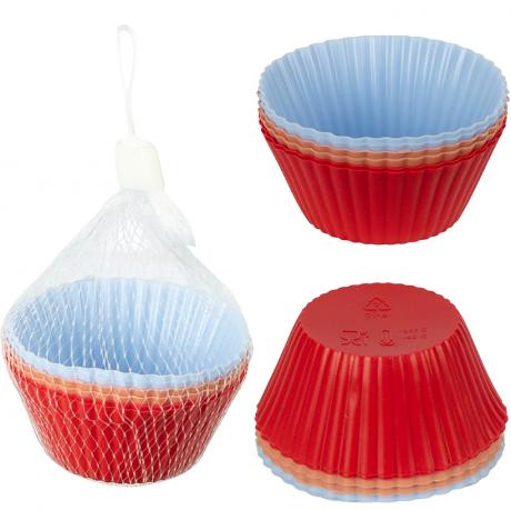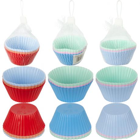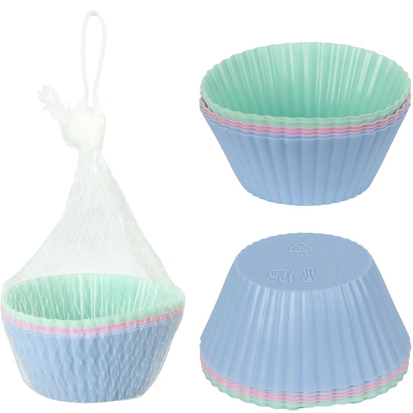Силіконові форми для кексів — зручний і практичний аксесуар для домашньої та професійної випічки. У наборі 6 формочок яскравих кольорів, які підходять для кексів, мафінів, желе, десертів і порційних закусок. Виготовлені з якісного харчового силікону: гнучкі, міцні, не деформуються, не вбирають запахи та забезпечують легке виймання випічки без змащування. Стійкі до високих і низьких температур, підходять для духовки, мікрохвильової печі та морозильної камери. Розмір однієї формочки: верхній діаметр 6,5 см, нижній діаметр 4,2 см, висота 3 см. Упаковка — сітка. Ціна вказана за набір.