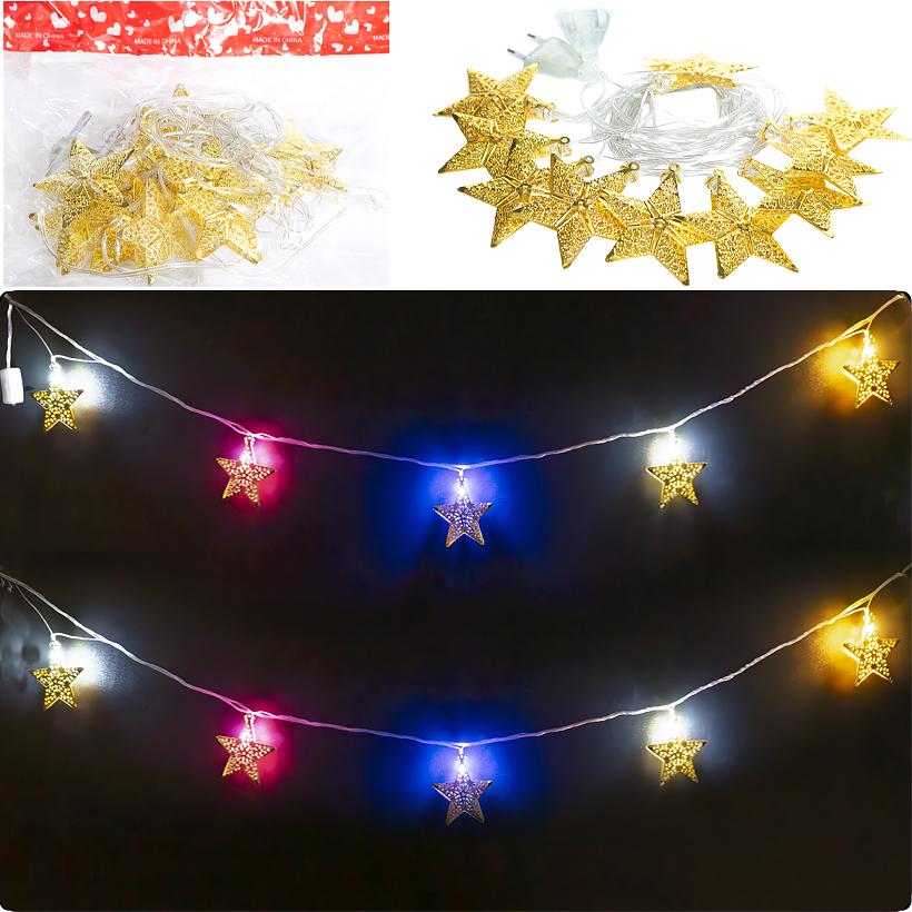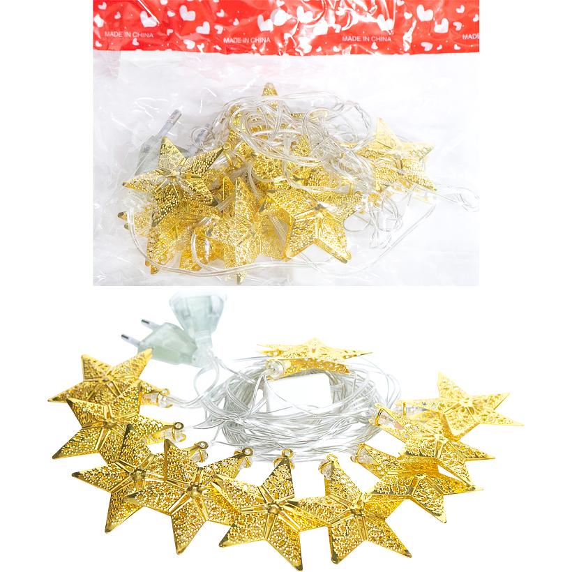 Гірлянда електрична LED Зірка Золото 10шт, 2м колір ламп жовтий RJ-14