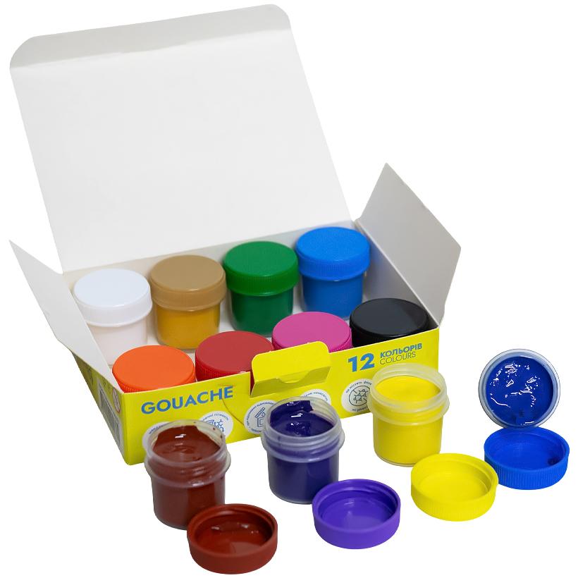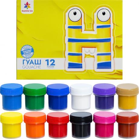 Набір гуаші містить 12 кольорів, кожен об'ємом 10 мл. Фарба підходить для роботи на папері, полотні, тканині, картоні та фанері. Використовується в декораційній живопису та для виконання ескізів. Загальний обсяг набору становить 120 мл (12 х 10 мл).
