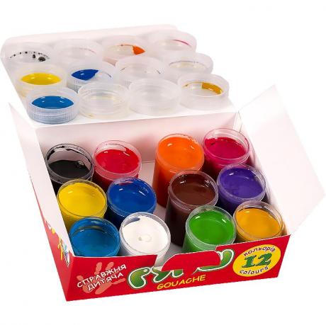 Набір гуаші містить 12 кольорів, кожен об'ємом 20 мл. Фарба підходить для роботи на папері, полотні, тканині, картоні та фанері. Використовується в декораційній живопису та для виконання ескізів. Загальний обсяг фарби становить 240 мл (12 х 20 мл).