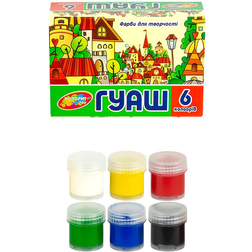 Гуаш для дитячої творчості в комплекті з 6 кольорами по 16 мл. Підходить для роботи на папері, полотні, тканині, картоні та фанері. Використовується в декораційній живопису та для виконання ескізів.