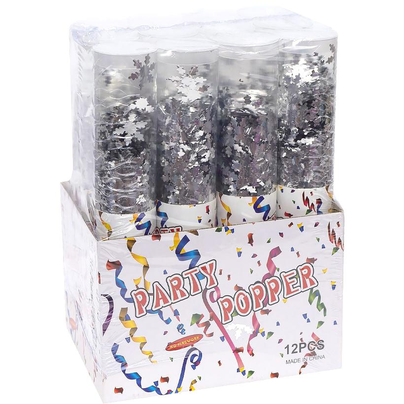 Хлопушка довжиною 30 см з кольоровим конфеті. Пневматична конструкція з поворотним механізмом.