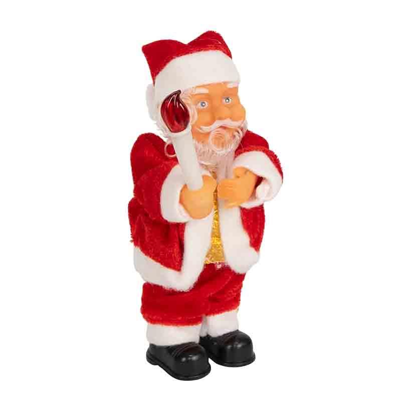 Механічна іграшка «Дід Мороз» висотою 18 см — яскравий святковий сувенір для дому чи офісу. У руках фігурки свічка, що світиться, створюючи затишну атмосферу. Іграшка відтворює новорічну мелодію та дарує гарний настрій. Працює від двох батарейок типу AAA (в комплект не входять). Чудовий варіант для декору й подарунка.