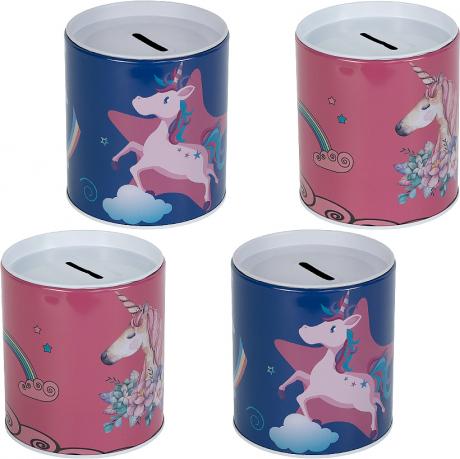 Скарбничка виготовлена з металу розміром 10x9 см. Має яскравий малюнок з популярним персонажем. В верхній частині є отвір для зручного додавання монет і купюр. Підходить для ви ...