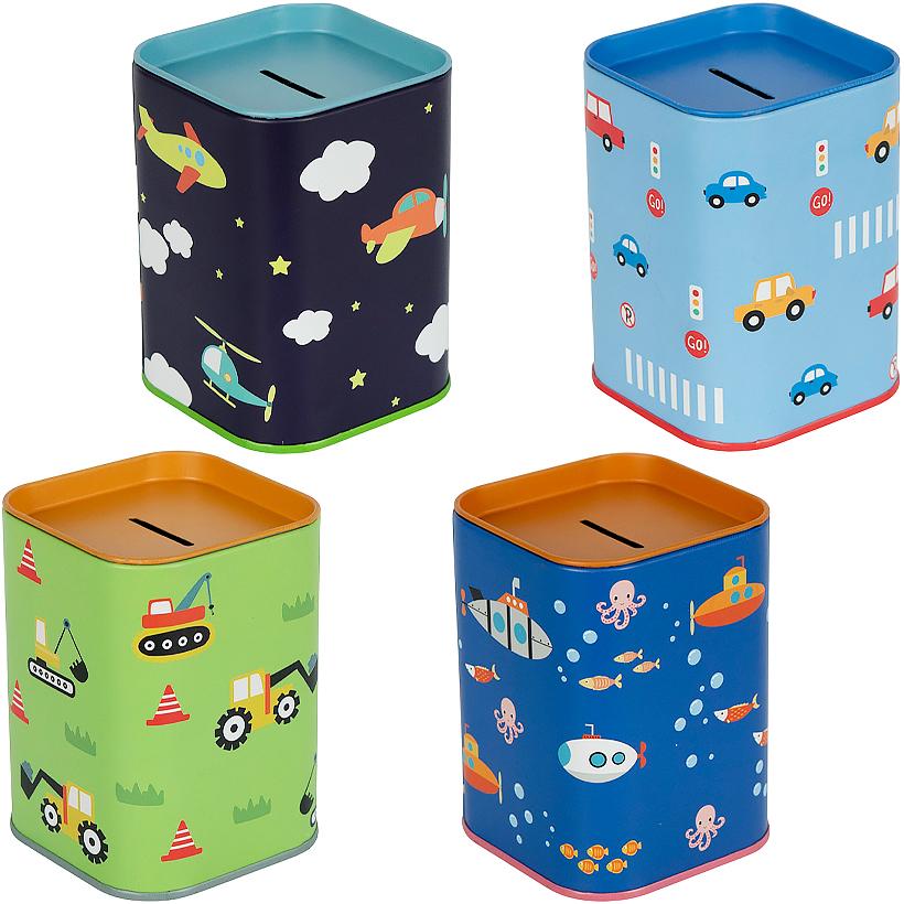 Металева скарбничка розміром 10,5*7,5*7,5 см. Виготовлена з міцного металу, що забезпечує тривалий термін служби. Має простий механізм для додавання грошей через отвір на верхній частині. Дизайн з зображенням популярного персонажа підходить для дитячої кімнати або робочого столу.