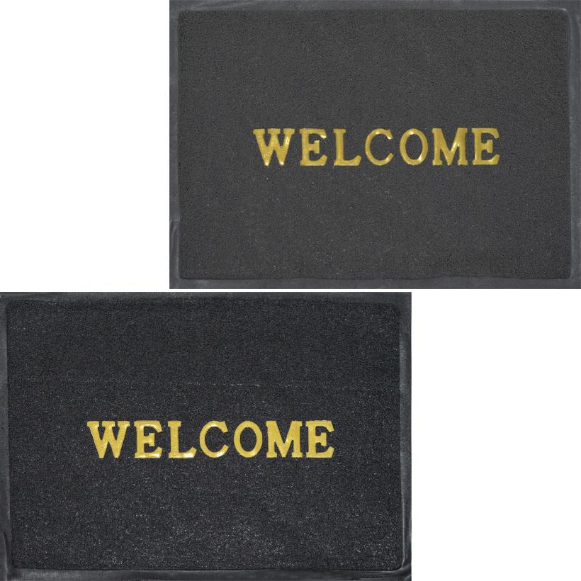 Гумовий килимок прямокутної форми розміром 48×68 см з написом «Welcome». Підходить для використання біля вхідних дверей, у передпокої, на балконі або терасі. Виготовлений з міцної гуми, стійкий до вологи та забруднень. Поверхня ефективно затримує бруд і вологу з взуття. Килимок легко очищається, зносостійкий та не ковзає по підлозі, забезпечуючи стабільність під час щоденного використання.