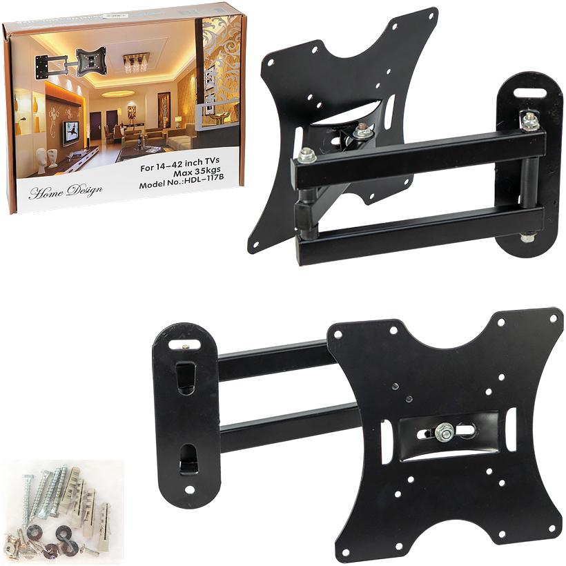 Настінний кронштейн для телевізора HDL-117B підходить для екранів 14–42 дюйми з максимальною вагою до 35 кг. Сумісний зі стандартом VESA, має механізм нахилу ±15° та регульований винос від стіни 80–460 мм для зручного перегляду. Виготовлений із міцної холоднокатаної сталі з порошковим покриттям. Підходить для LED, LCD і плазмових телевізорів. У комплекті кріплення та інструкція. Розмір упаковки: 28×23×6 см.