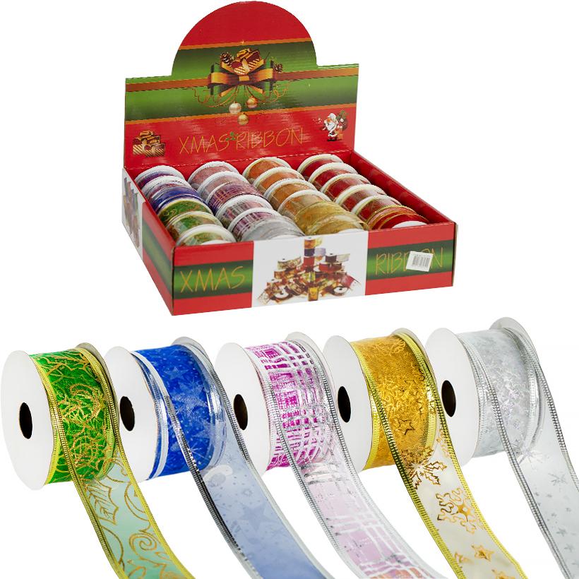 Ця стрічка виготовлена з органзи і має дротяний край. Вона прикрашена новорічним малюнком. Стрічка використовується для декорування приміщень, створення ялинкових іграшок, оформлення новорічних та різдвяних подарунків, а також виготовлення новорічних заколочок і бантиків. Ширина стрічки становить від 3,7 до 4 см, а довжина - 2,7 м. В упаковці знаходиться 24 штуки.
