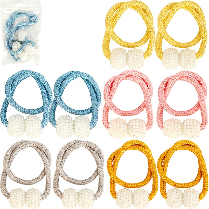 Магніти для штор з декоративними пластиковими кружечками, оздобленими намистинками. Довжина шнура — 40 см, діаметр кружечків — 3 см. Надійно фіксують штори, не пошкоджуючи тканину, та легко знімаються. Прикрашені намистинками закінчення додають інтер’єру вишуканості й стильного акценту. Підходять як для легкого тюлю, так і для щільних гардин.