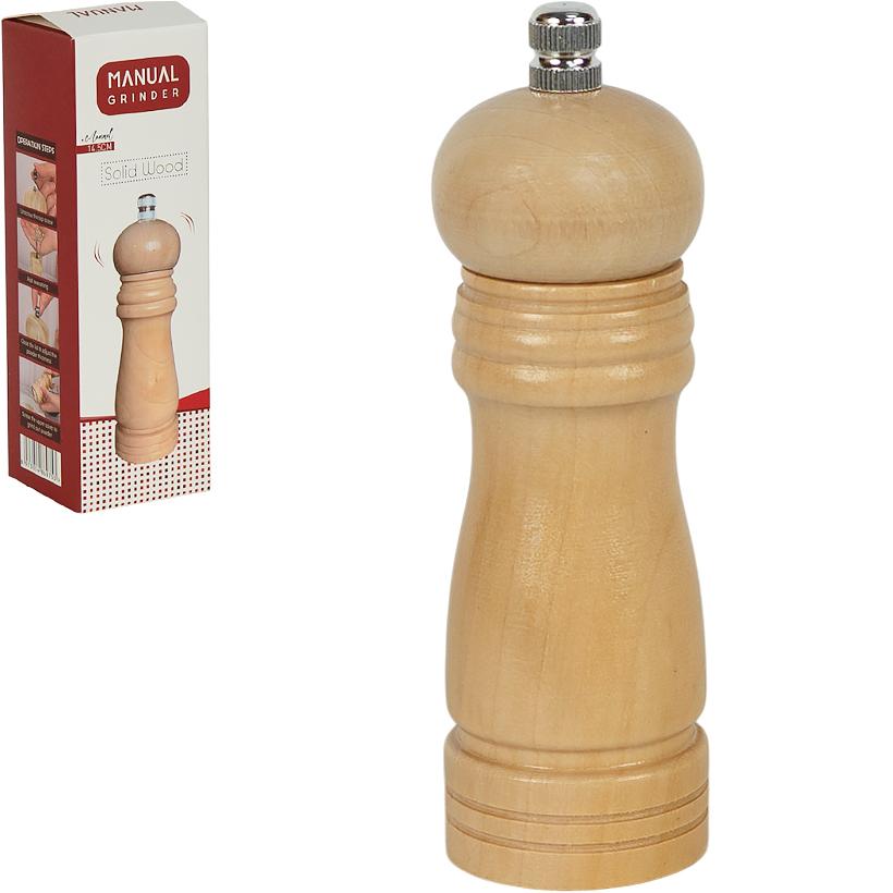 Дерев’яний ручний млин для спецій, висота 14,5 см — стильний та практичний аксесуар для кухні. Виготовлений із міцної деревини з металевим механізмом помолу, що гарантує довговічність і рівномірне подрібнення перцю, солі та інших спецій. Компактний розмір зручно тримати в руці, а класичний дизайн гармонійно доповнить будь-який інтер’єр. Чудове рішення для домашнього використання та як подарунок.