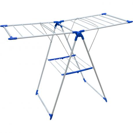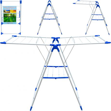 Сушарка для одягу 0016A — зручне та практичне рішення для щоденного сушіння білизни в квартирі, будинку або на балконі. Конструкція розміром 132×58×91 см забезпечує достатньо місця для розміщення одягу, рушників і постільної білизни, водночас залишається компактною та стійкою. Каркас виготовлений із металевих трубок із міцними пластиковими з’єднаннями, що гарантує надійність і довгий термін служби. Сушарка легко розкладається та складається, не потребує інструментів для встановлення. У складеному вигляді має компактний розмір 99×60×6 см, що зручно для транспортування та зберігання. Універсальний формат робить модель придатною як для домашнього використання, так і для оптових продажів.