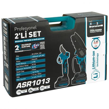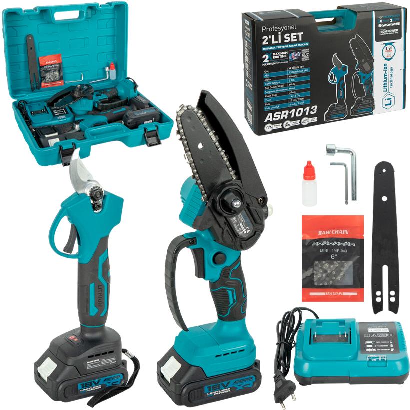 Набір акумуляторних інструментів 2-в-1: ланцюгова міні-пила та секатор в кейсі + коробка ASR1013