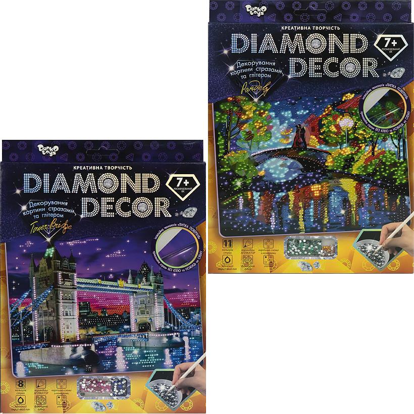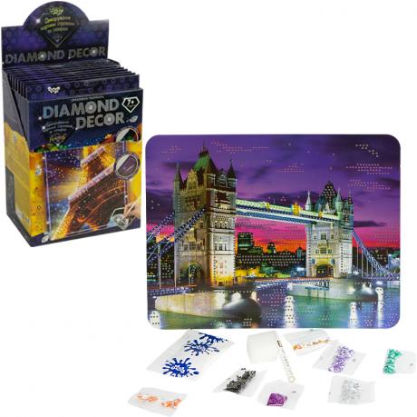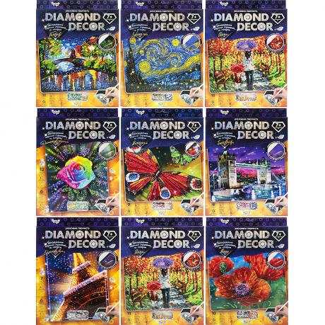 Набір "Diamond Decor" включає матеріали для створення картини в техніці декорування стразами. Підходить для дітей від 7 років і дорослих. Картина має липкий шар для легкого закріплення стразів без клею. У комплект входить спеціальний олівець-аплікатор для розташування страз. Розмір упаковки становить 27,5х22х1,5 см.