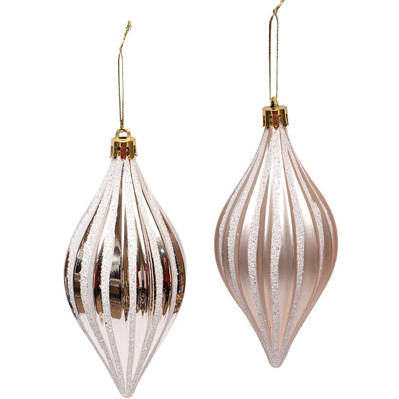 Набір ялинкових іграшок 2шт "Шампань" 13*6см 2414E з глітером "біле золото"