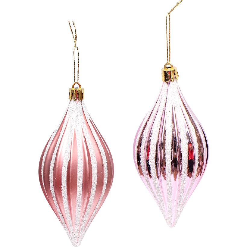 ТОТАЛ! Набір ялинкових іграшок 2шт "Рожевий" 13*6см 2414G з глітером "біле золото"