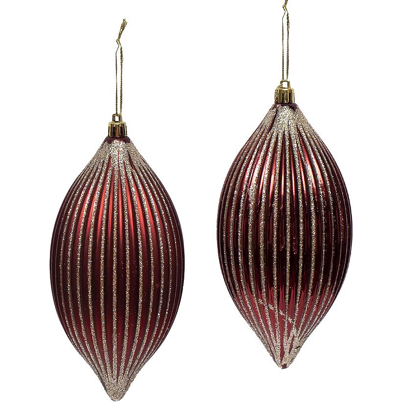 УЦІНКА! Набір ялинкових іграшок 2шт "Бордо" 16*8см 241603E з глітером "золото"