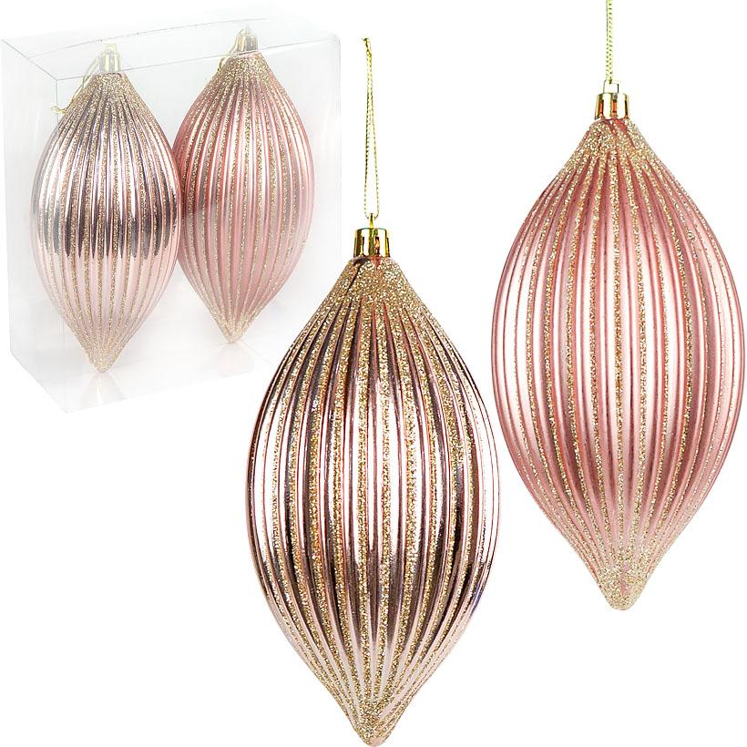 АКЦІЯ! Набір ялинкових іграшок 2шт "Рожевий" 16*8см 241603F з глітером "золото"