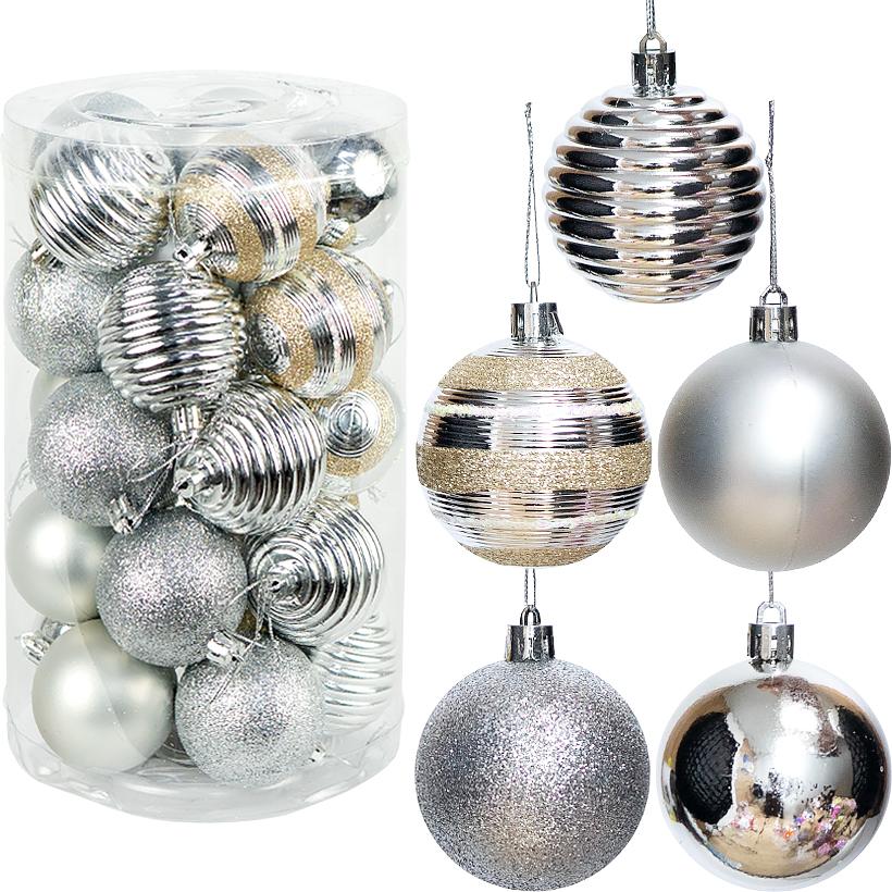 Набір новорічних куль 25шт D6см "Срібло" (5 дизайнів по 5шт) YH-9287 тубус