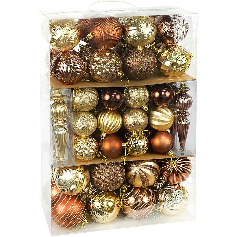 АКЦІЯ! Набір ялинкових прикрас 74шт Мокко з золотими акцентами 6279-1F