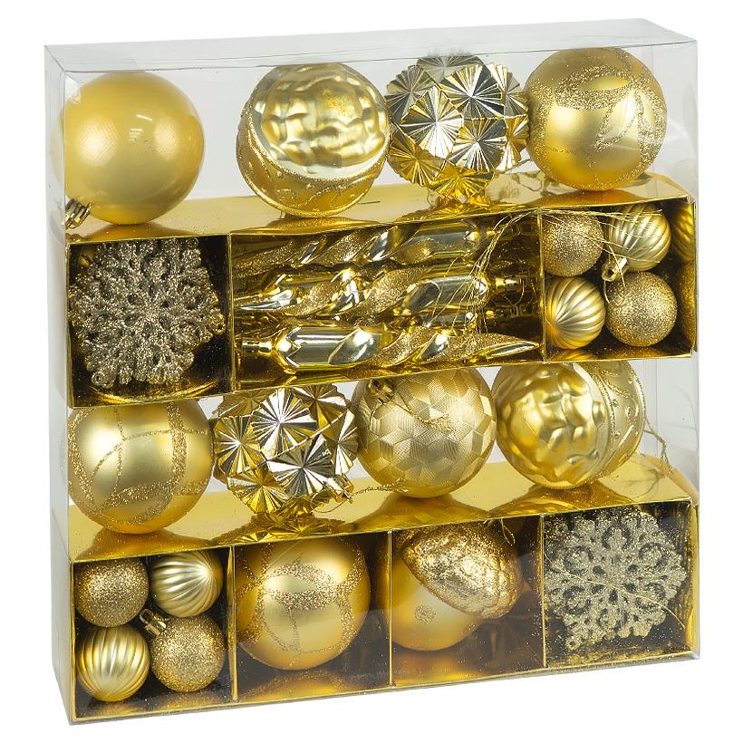 Набір ялинкових прикрас 62шт Золото з глітером ZWH48-4