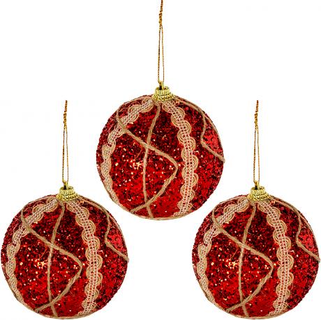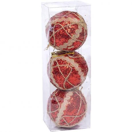 Набір містить три ялинкові іграшки у формі шишок. Матеріал виготовлення – пінопласт з покриттям гліттером. Розмір кожної іграшки становить 8 см на 6 см. Упаковка виконана в пла ...