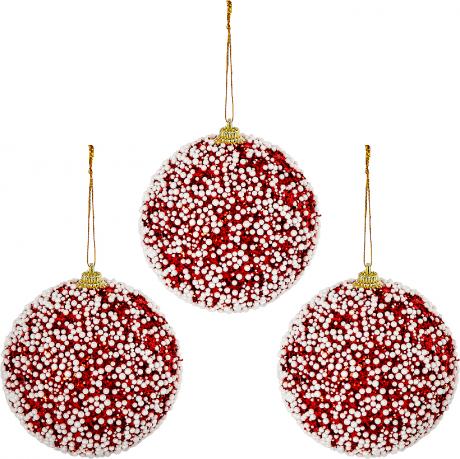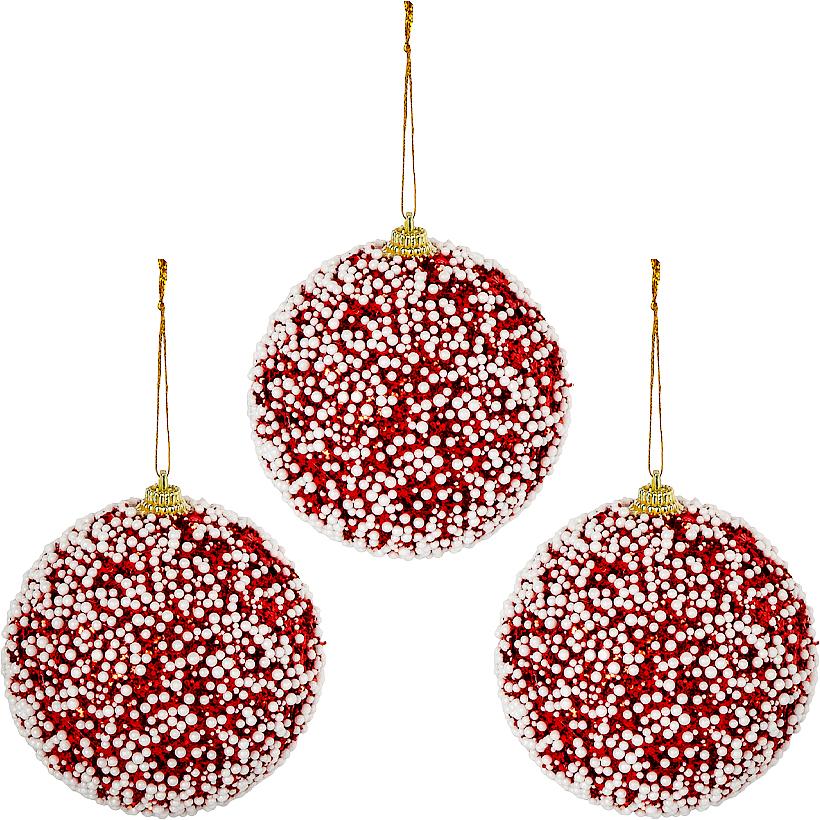 Набір ялинкових прикрас 6279-3 (16 шт.) — святковий комплект пластикових куль у класичному поєднанні червоного та білого кольорів із новорічними візерунками: сніжинками, оленям ...