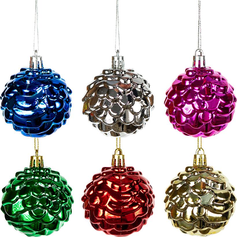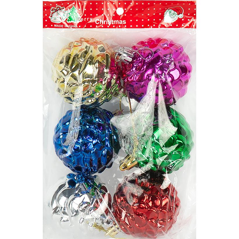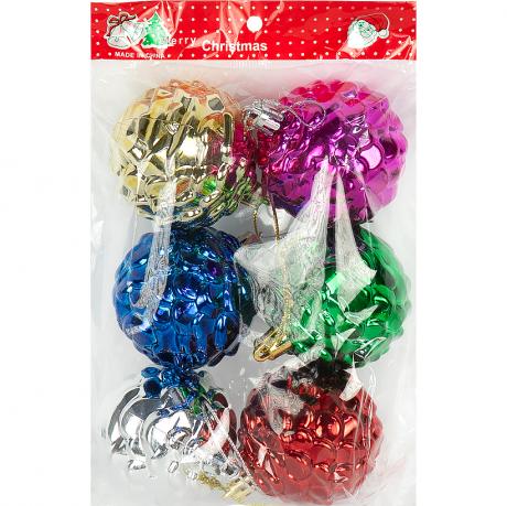Набір ялинкових іграшок включає 6 куль діаметром 5,5 см. Виготовлені з пінопласту. Колір - мікс. Ціна вказана за весь набір. Цілісність товару слід перевіряти при отриманні.