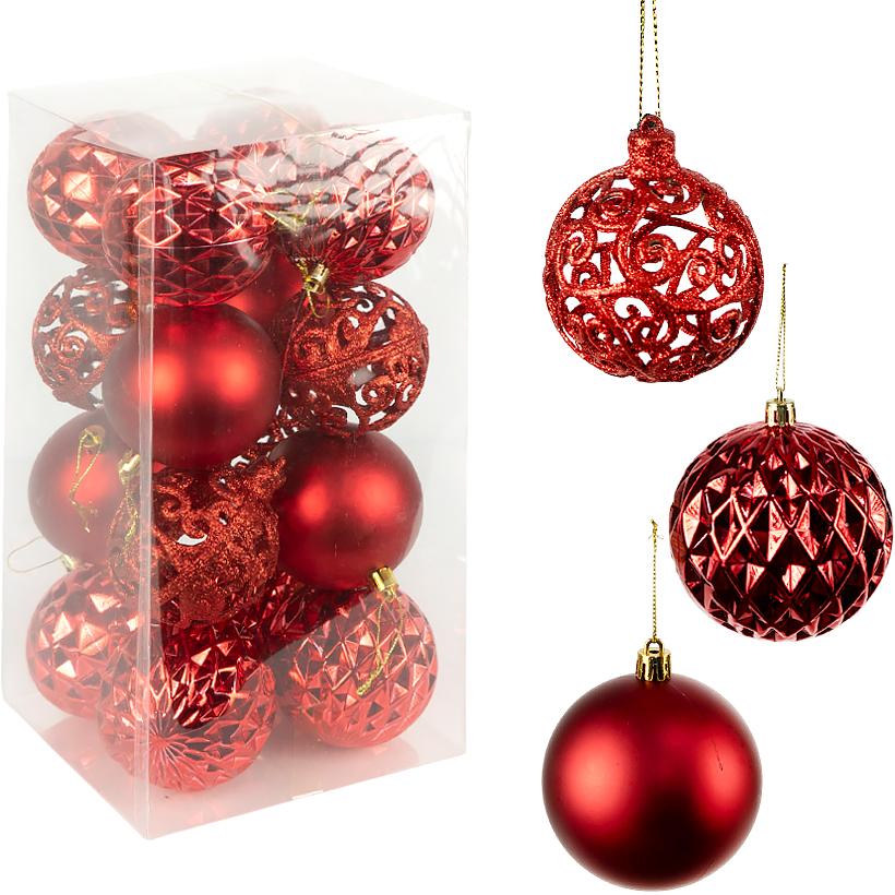 Набір новорічних куль 16шт D8см "Червоний" YH-9113